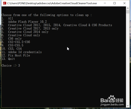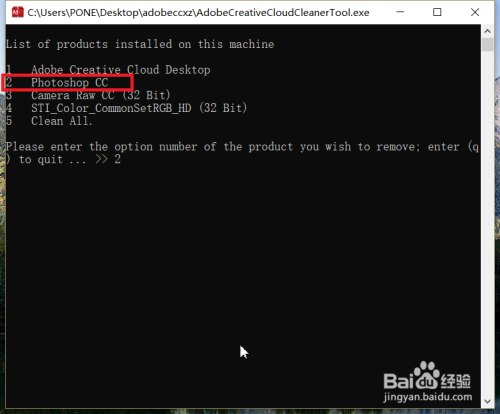 接下来,软件会主动检测电脑中安装的Adobe软件,按照列表提醒,选摘要卸载的软件,输入数字代码之后,按下回车键。