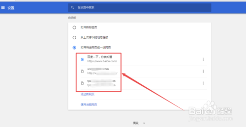 然后在这个选项下面可以点击一个打开特定网页或一组网页的选项,选择它。