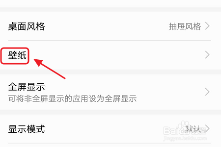 在显示页面,我们点击此中的一项“壁纸”,然后就会跳转到设置壁纸的界面;