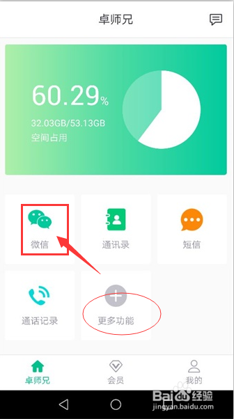 安装后打开恢复东西,在首界面可以看到卓师兄的整个功能详情,按照提醒进行操作,然后点击【去备份】,详情见下图: