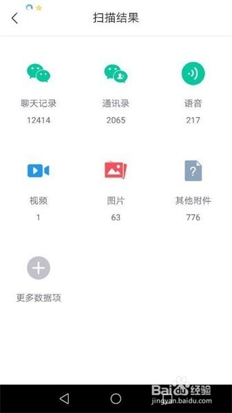 我们完当作备份后,返回顾页,然后再次点击上图的【微信】图标,进行微信记实数据扫描阐发,扫描完当作后,跳转到扫描成果页面,点击【聊天记实】图标