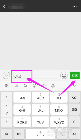 打开老友聊天页面,粘贴我们复制的这个符号,点击【发送】。当然也可以选择群发,那样效率更高。