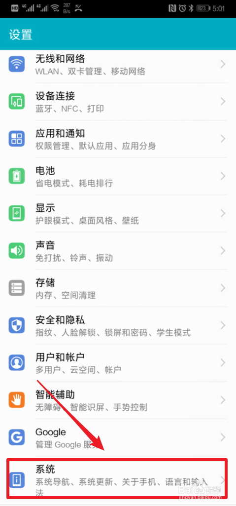 进入设置后,我们选择设置下方的“系统”选项进入。
