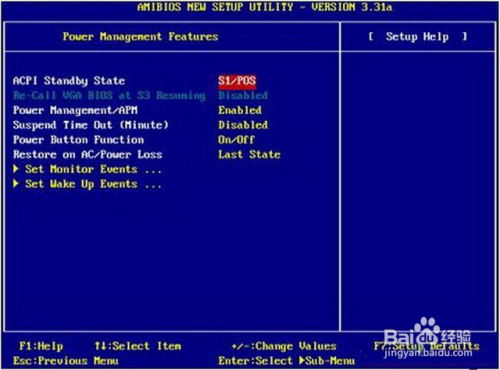 3、选择ACPI Standby State,设置值为 S3/STR 睡眠模式;
