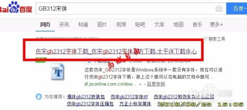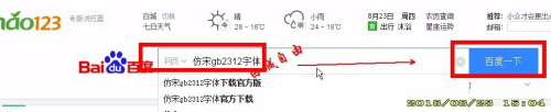 在百度上搜索框中輸入 仿宋gb2312字体 点百度一下 。