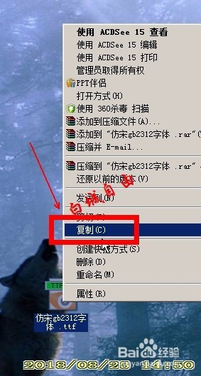 已经下载到桌面上的字体文件。是TTF格局不成双击执行。