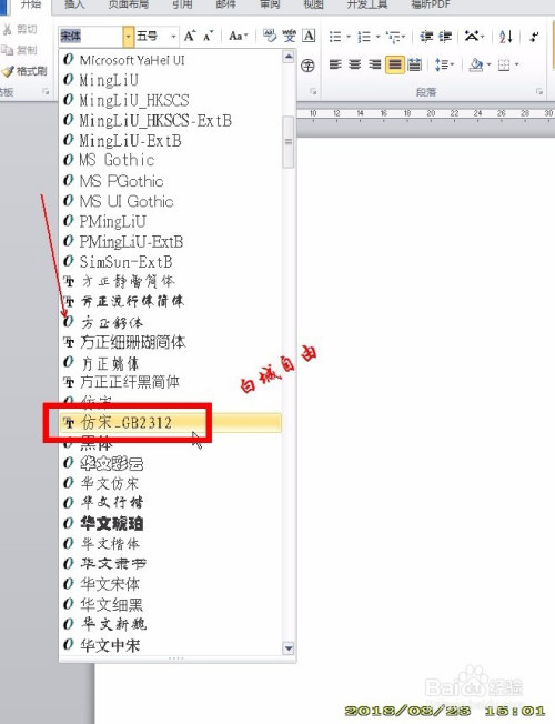 在WORD文档字体中就可以找到仿宋gb2312字体了。