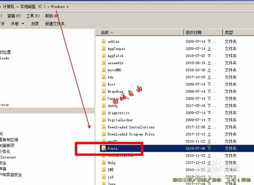 如许已经进入字体目次,把适才复制的字体粘贴进去。