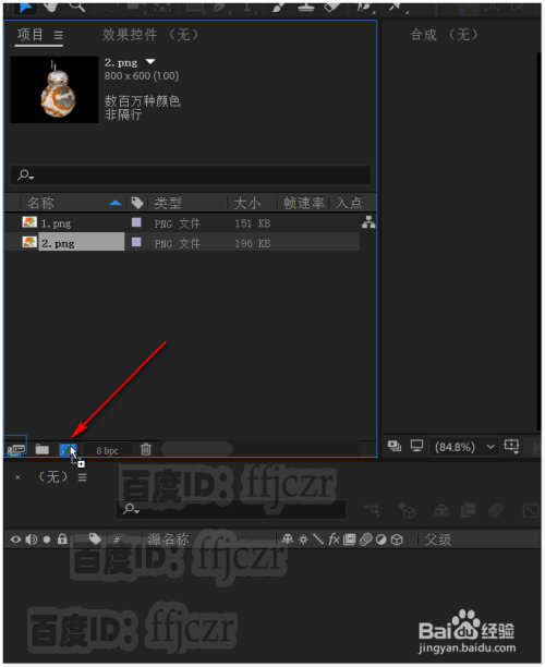 二张图片的大小是不异的,打开AE将该图片导入。