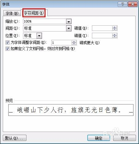 第三步:弹出“字体”设置对话框,切换至字符间距界面。