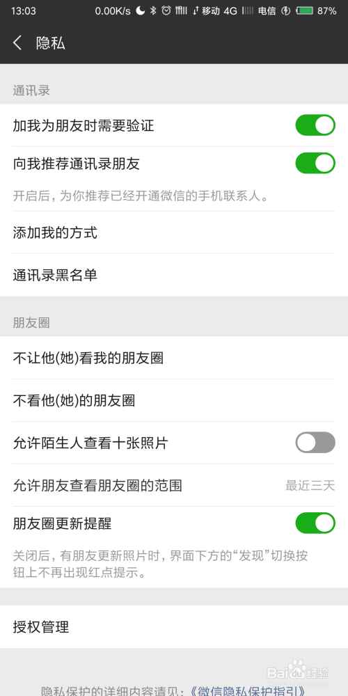 若是你不想让老友看你的朋友圈,还可以点击不让他看朋友圈,把老友插手黑名单。