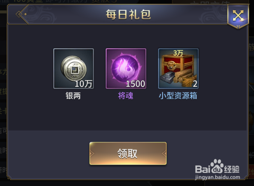 玩家天天城市领取到一个礼包,礼包里就会有10万的银两。除此之外还有将魂和资本箱。