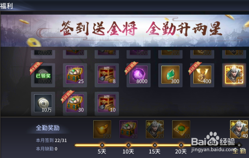 每日签到领取银两,每周若是玩家持续签到,每隔7天就可以领取一次银两奖励。