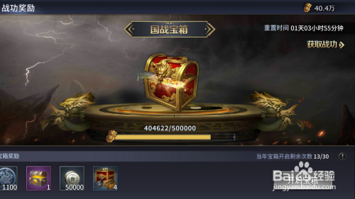 经由过程加入国战,当玩家的进献达到必然数值后,就可以开启宝箱,宝箱中此中就有银两。