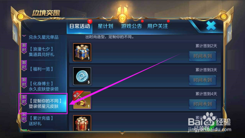 在活动页面找到——“定制你的分歧-登岸领星元皮肤”这个活动,点击进入;