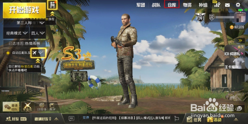 启动游戏,点击右上角的【仓库】。