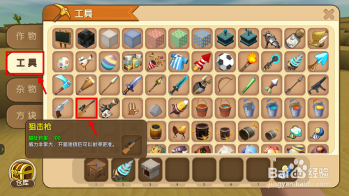 按B键打开背包,左侧选择第二项东西,然后拿取狙击枪。
