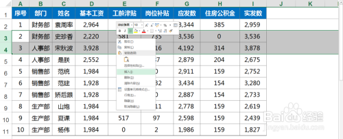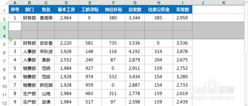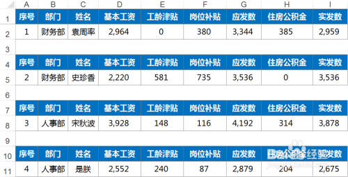 下图是工资表,我们要将工资表建造当作零丁的工资条。
