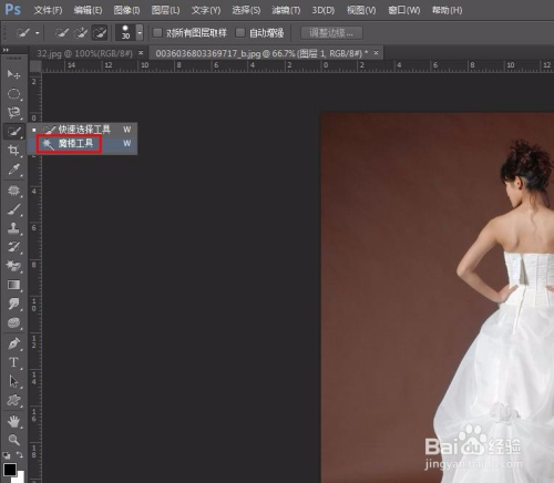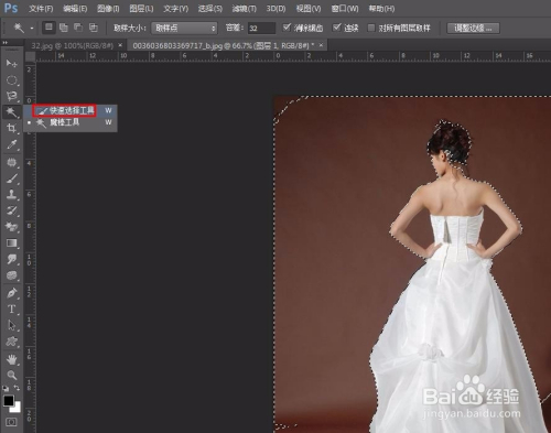 第二步:复制布景图层,在左侧东西栏中选择“魔棒东西”,用快速选择东西做辅助,完当作抠图,delete键删除布景,按Ctrl+D键打消选区。