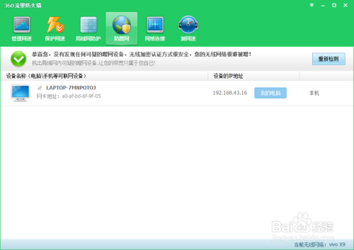 除此之外,还有一种可能,那就是别人也盗用了你的WLAN热点。这时我们就可以选择防蹭网功能,这个功能可以及时监测毗连你的热点的设备流量利用环境。