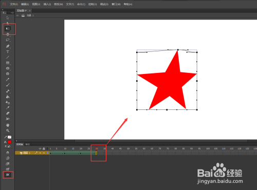 在时候轴第10帧的位置上按快捷键F6插入一个关头帧,然后鼠标定位在第10帧的位置,选中五角星,选择肆意变形东西,单击东西栏最下方的封套东西,然后将五角星的上面一个角往左上角位置进行拖动。