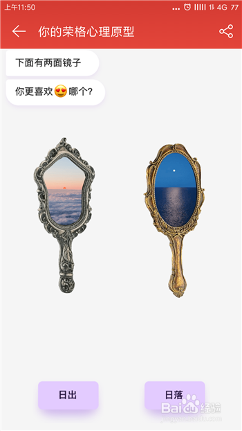 接下来就正式进入到测试阶段,第一个问题是两面镜子遴选喜好的,直接鄙人方点击选择。