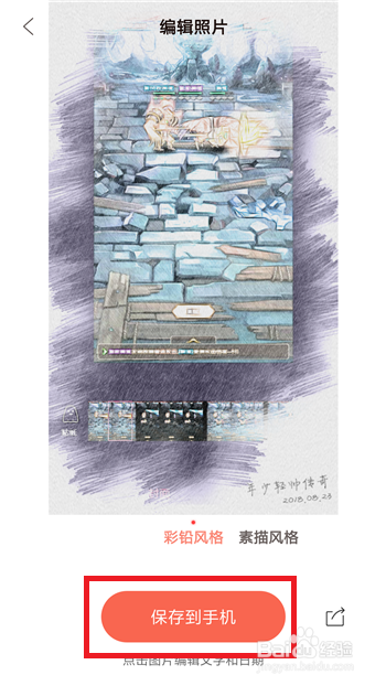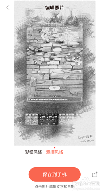 编纂好图片后返回到素描界面,点击【保留到手机】即可保留素描照片。