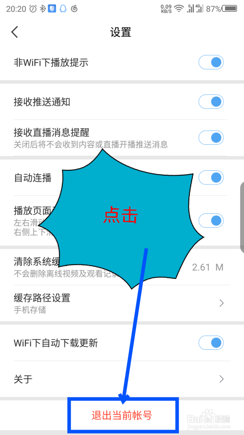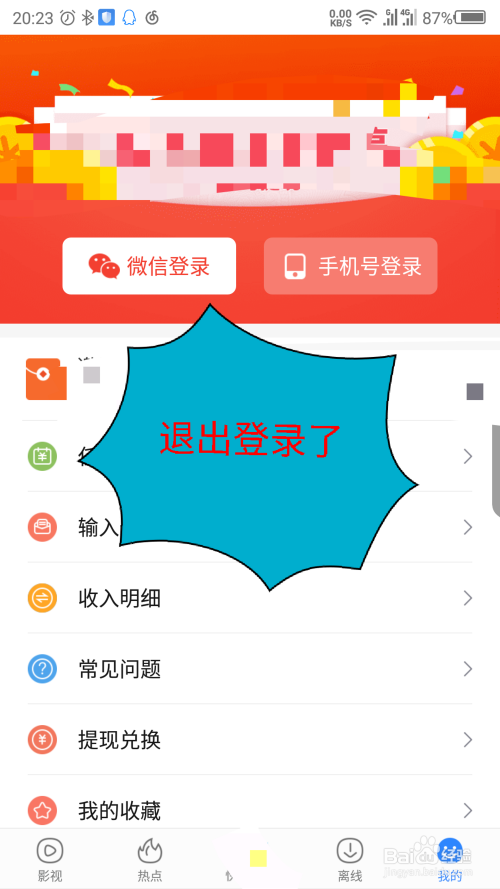 手机百度视频怎么退出登录