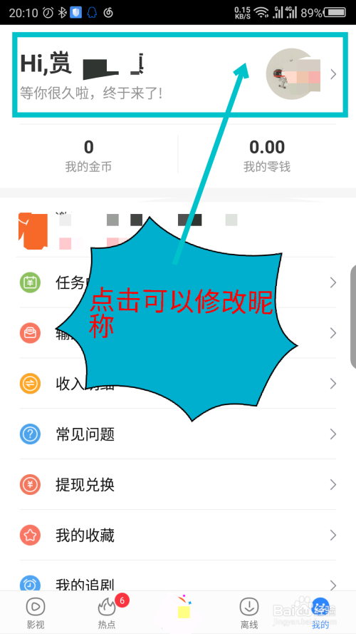 - 微信登录后,可以点窜百度视频的昵称。