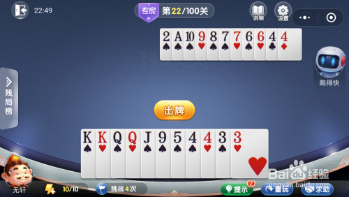 微信欢喜斗地主残局专家级难度第22关图文攻略