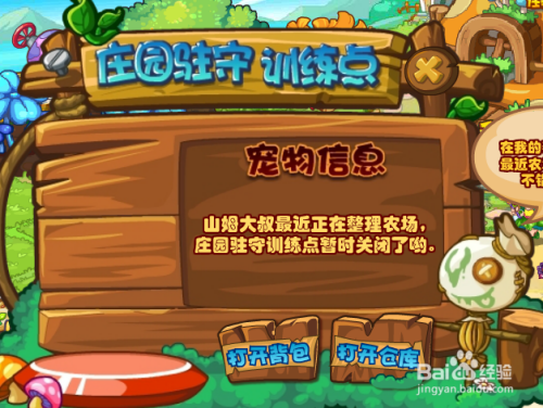 选择“打开背包”或选择“打开仓库”,选择驻守宠物。