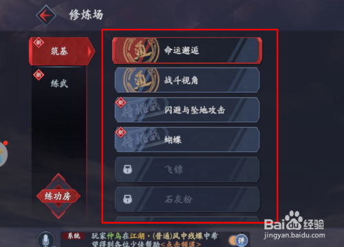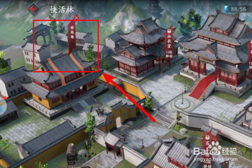 进入快活林后,可以看到良多功能选项,我们选择第一个的修炼场进入。
