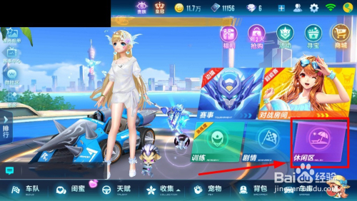 首先进入你的飞车界面,点击“休闲区”一栏