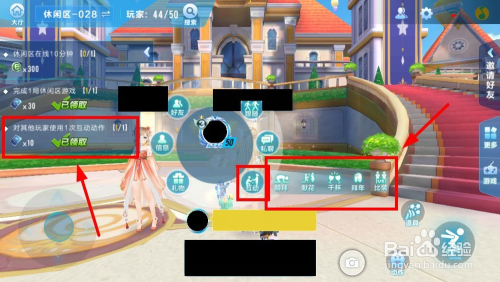 进入休闲区后,点击要利用动作的玩家,选择“互动”,在互动中,选择你要对其他玩家利用的动作,完当作互动后,即可获得10个点券