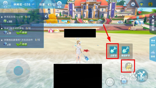 最后点击图中的“道具——小铲子”,进行挖宝藏活动,一天最多能挖10个宝藏,可以挖到良多奖品,如许就完当作了在休闲区的使命了