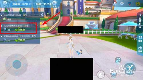 接着在休闲区在线10分钟后,即可完当作“获得300经验值”的使命