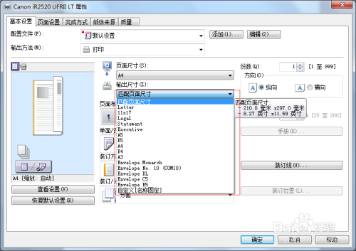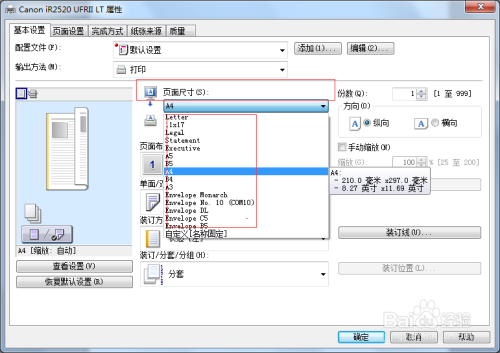 我们选择好打印机之后,点击属性,就可以进入属性设置。属性包罗根基设置,打印设置,纸张设置等,如下图所示