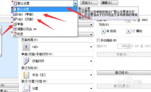 我们先选择根基设置-默认设置,默认设置可以选择2合一,单面双面,将此步的选择设置为默认设置,如下图所示。