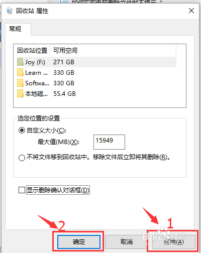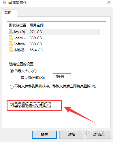 若是需要回复复兴提醒窗口,则按照以上方式找到【显示删除确认对话框】,再勾上即可。