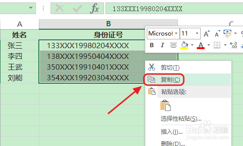 首先,用到排列提取最多的是身份证年代日信息的提取,下图是一组身份证号的表格,若是我们想要批量将此中的出生年代日提掏出来,首先选中这一列数据,然后将其复制粘贴到后面的C列,如图所示...