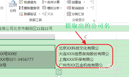 返回到表格今后,我们就会发现我们需要的出生年代日信息被提掏出来了;别的还有一种环境也会用到排列提取,那就是如下图二中的一年夜堆文字,我们看到里面既含有公司名、还有公司地址以及德律风,若是我们只需提取此中的公司名称;