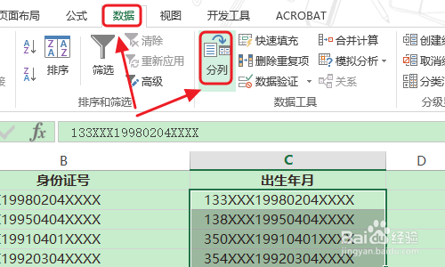 然后选中C列的身份证信息,依次点击“数据”-“排列”,然后会弹出文天职列标的目的导第一步,勾选此中的“固定宽度”,然后点击下一步;