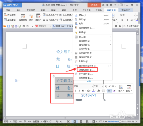 同理,选择右侧列的表格,右键选择“边框和底纹”