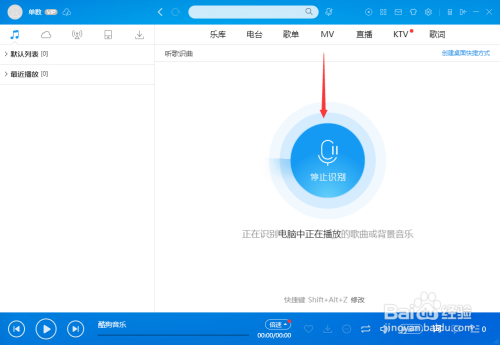 3. 弹出如图所示的界面,申明正在识别歌曲,它可以识别电脑中正在播放的歌曲。