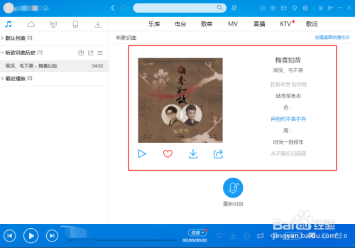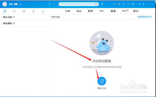 4. 若是【未识别出歌曲】如图,点击底部【从头识别】按钮