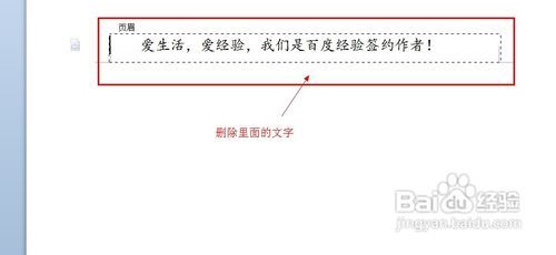 然后我们就看到我们的文档里面,页眉和页脚就处于可以编纂的状况了。好了,我们利用常用的文字编纂技巧,直接删除页眉和页脚里面的文字就可以了。