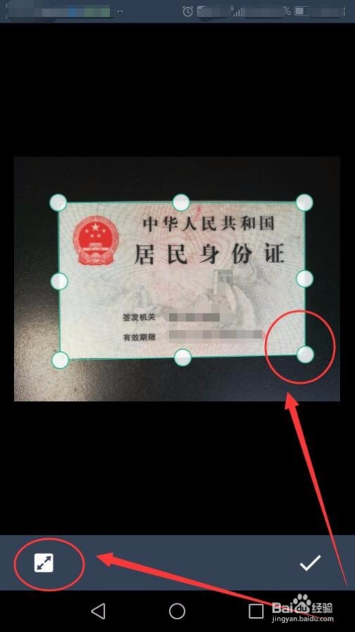 单击左下方的按钮,在证件边上呈现八个控点后,可以选择对齐证件的边缘。