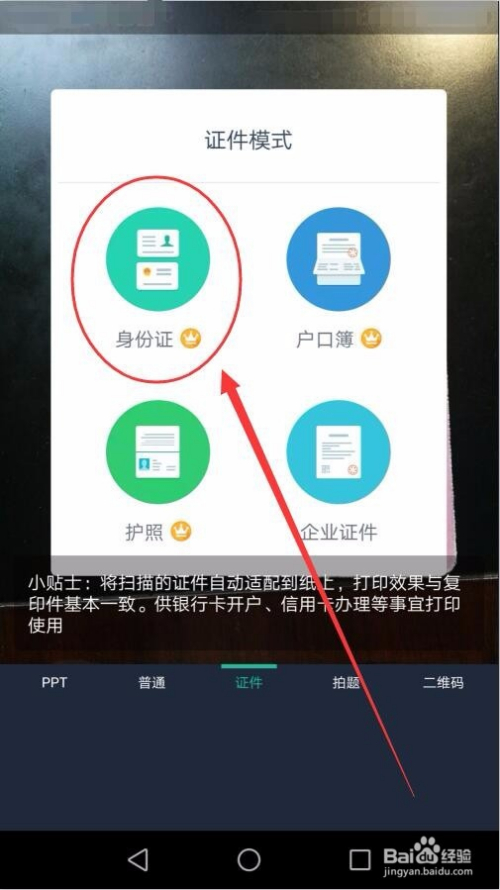 扫描窗口中,选择证件选项。