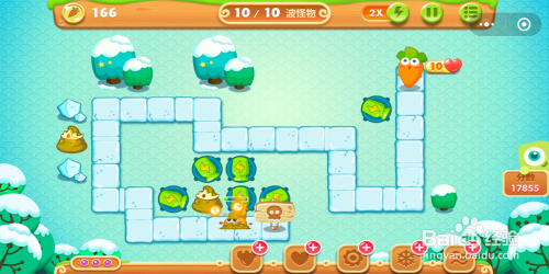 迅玩版捍卫萝卜第2关总共有10波怪物,那在这一关如何覆灭怪物并获得金萝卜呢?请看下文。