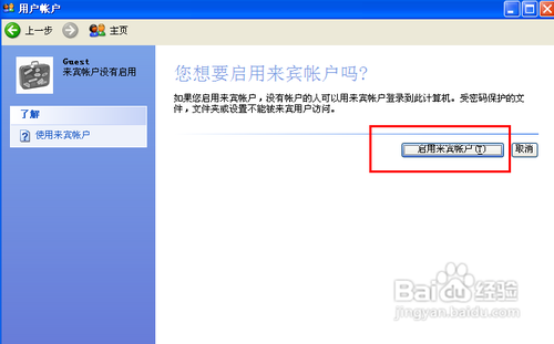 然后我们点击“启用宾客账户”,然后就能看到本身的宾客账户已经处于开启状况了。
